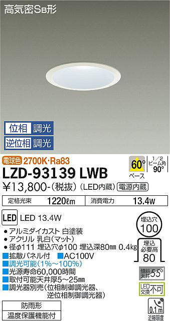 | 器具寸法 | 径φ111 埋込穴φ100 埋込深80mm |