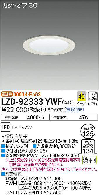 LZD-92333YWF+ 本体 LZA-91807 非調光用電源