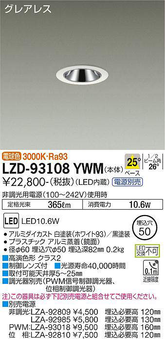 - LZD-93108YWM+LZA-92810 本体+位相制御調光用電源 30300