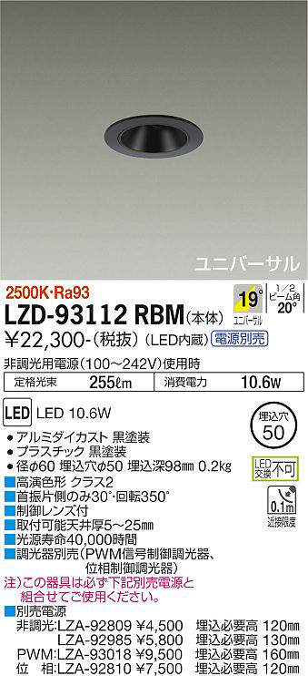 - LZD-93112RBM+LZA-92810 本体+位相制御調光用電源 29800