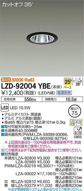 LZD-92004YBE+ 本体 LZA-92985 非調光用電源(100-242V)