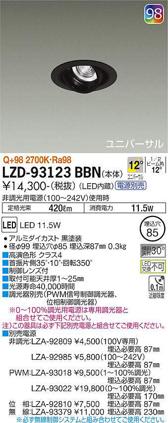 LZD-93123BBN+ 本体 LZA-92985 非調光用電源(100-242V)