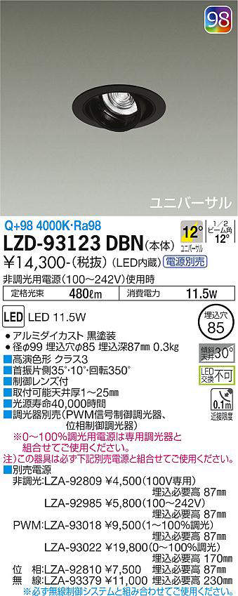 LZD-93123DBN+ 本体 LZA-92985 非調光用電源(100-242V)