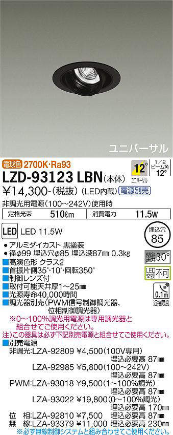 - LZD-93123LBN+LZA-92810 本体+位相制御調光用電源 21800