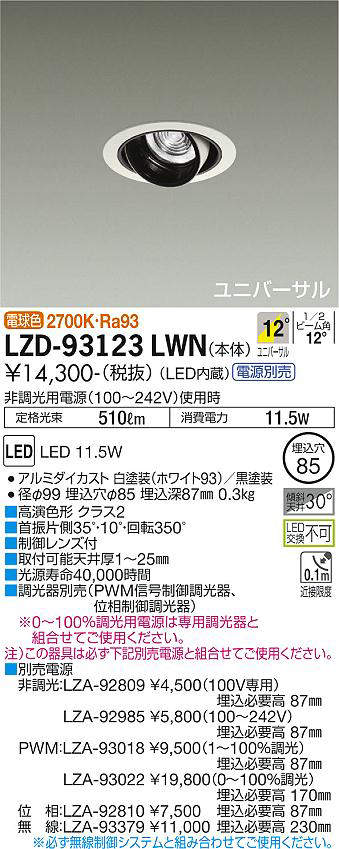 - LZD-93123LWN+LZA-92810 本体+位相制御調光用電源 21800