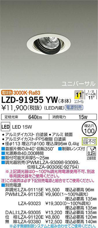 - LZD-91955YW+LZA-91123E 本体+PWM信号制御調光用電源 21800