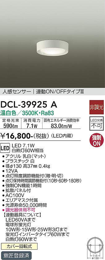 - DCL-39925W 昼白色/5000K/Ra83