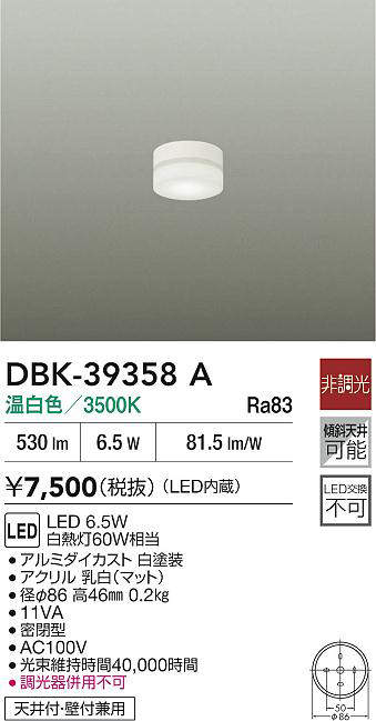 - DBK-39358W 昼白色/5000K/Ra83