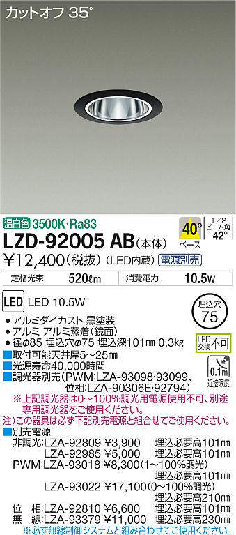 - LZD-92005AB+LZA-92985 本体+非調光用電源(100-242V) 17400
