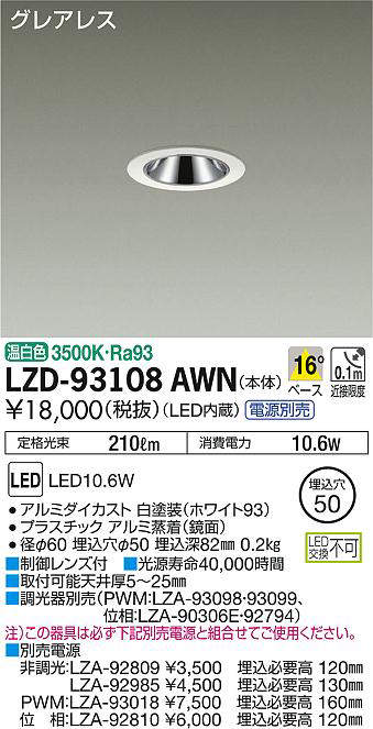 - LZD-93108AWN+LZA-92985 本体+非調光用電源(100-242V) 22500