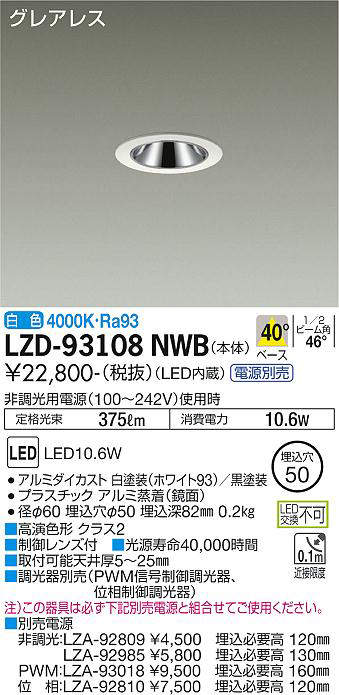 - LZD-93108NWB+LZA-92985 本体+非調光用電源(100-242V) 28600
