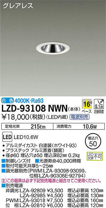 - LZD-93108NWN+LZA-92985 本体+非調光用電源(100-242V) 22500