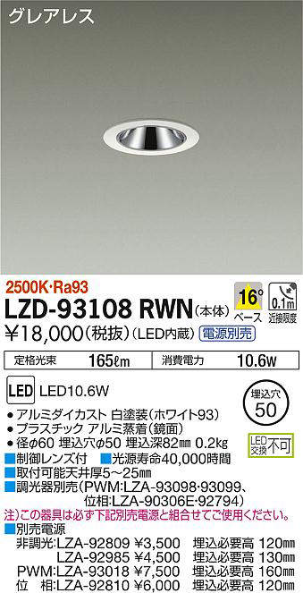 - LZD-93108RWN+LZA-92985 本体+非調光用電源(100-242V) 22500