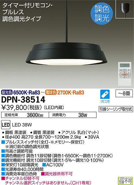 - ■調色機能付 調色11段切替(調色1・6500K~調色11・2700K)