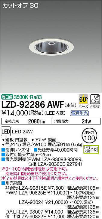- LZD-92286AWF+LZA-93007 本体+DALI 信号制御調光用電源 28000