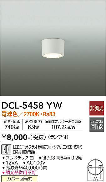 - DCL-5458WW 昼白色/5000K/Ra83
