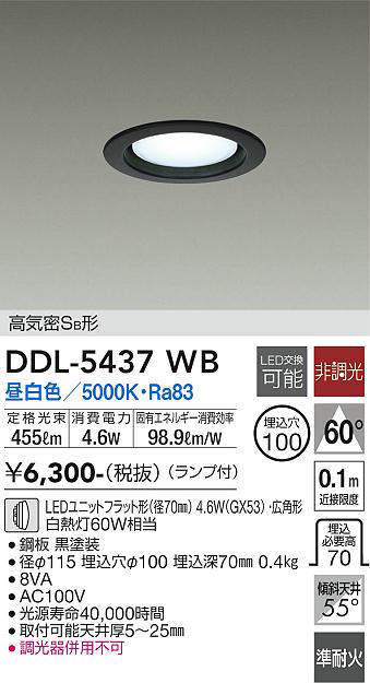 - 準耐火構造対応/ダウンライト/非調光丸タイプSB形/白熱灯60W相当/φ100