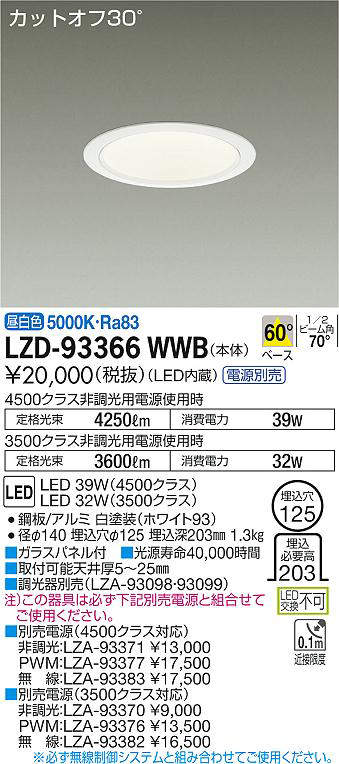 - LZD-93366WWB+LZA-93371 本体+非調光用電源 33000