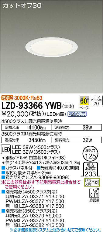 - LZD-93366YWB+LZA-93371 本体+非調光用電源 33000