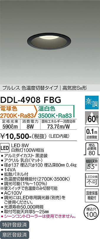 | 調光 / 非調光 | 楽調(2700K・3500K切替)(位相調光|逆位相調光) |