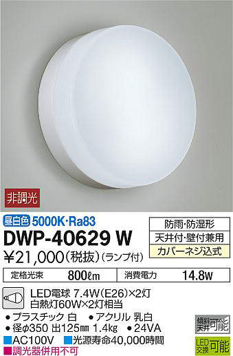 | 従来光源 | 白熱灯60W×2灯相当 |