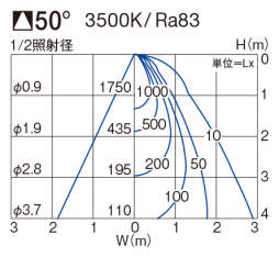 - 非調光用電源使用時:定格光束 1410lm 消費電力 13.8W