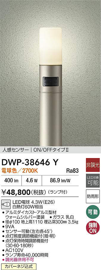 - アウトドアライト/人感センサー付タイプ/ポール/LED交換可能タイプ