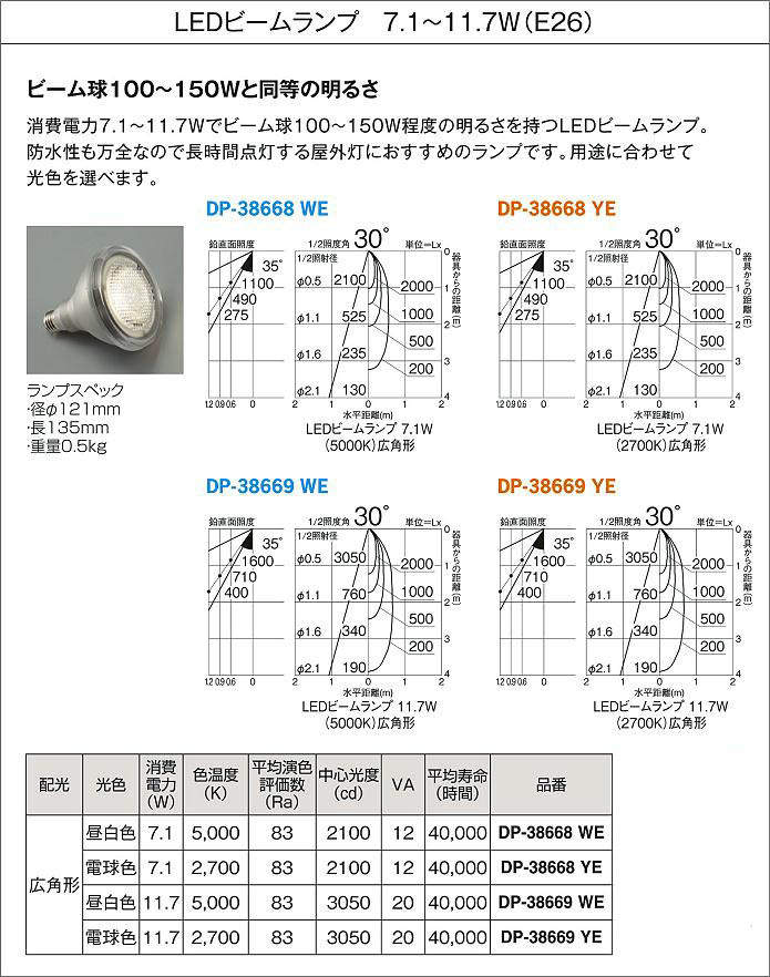 - DP-38669YE 別売LEDビームランプ 11.7W 2700K