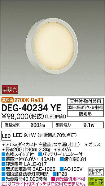 - DEG-40234WE 昼白色/5000K/Ra83