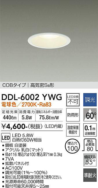 - DDL-6002WWG 昼白色/5000K/Ra83