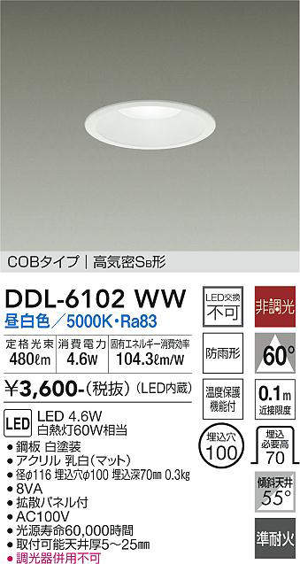 - DDL-6102AW 温白色/3500K/Ra83