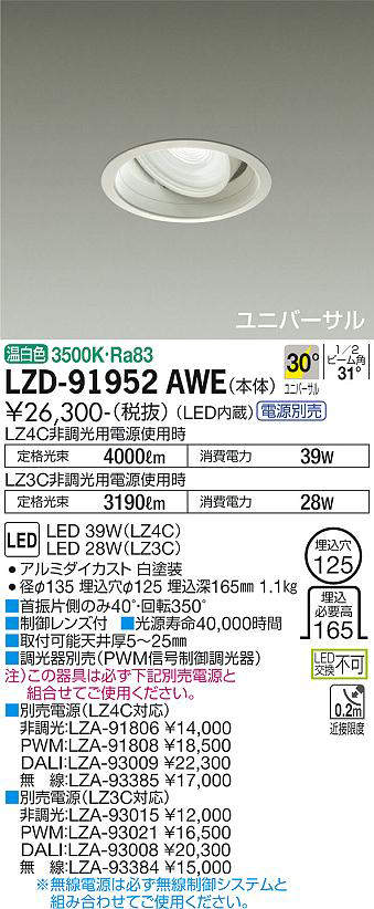 - LZD-91952AWE+LZA-91806 本体+非調光用電源 40300
