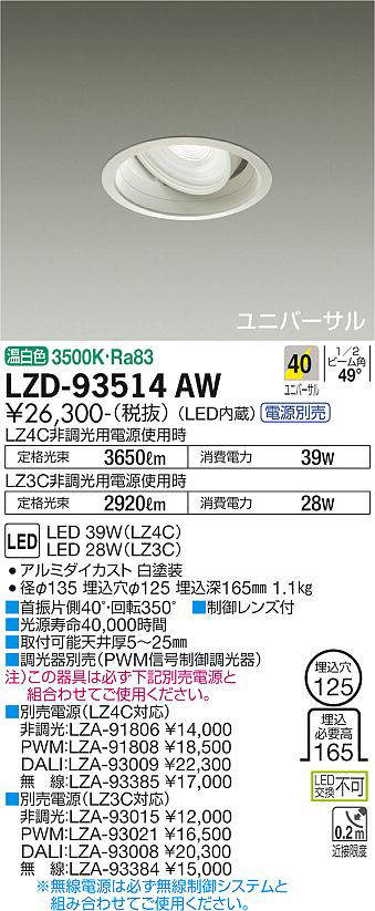 - LZD-93514AW+LZA-91806 本体+非調光用電源 40300