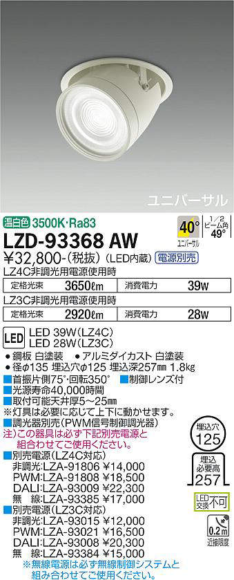 - LZD-93368AW+LZA-93015 本体+非調光用電源 44800