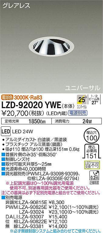 - LZD-92020LWV+LZA-93381 電球色/Q+2700K/Ra96