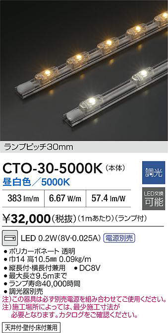 - CTO-50-5000K ラインライト ランプピッチ:50mmタイプ