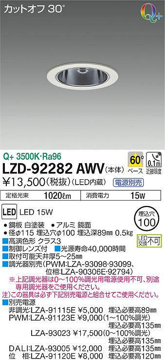 - LZD-92282AWV+LZA-91115E 本体+非調光用電源 18500