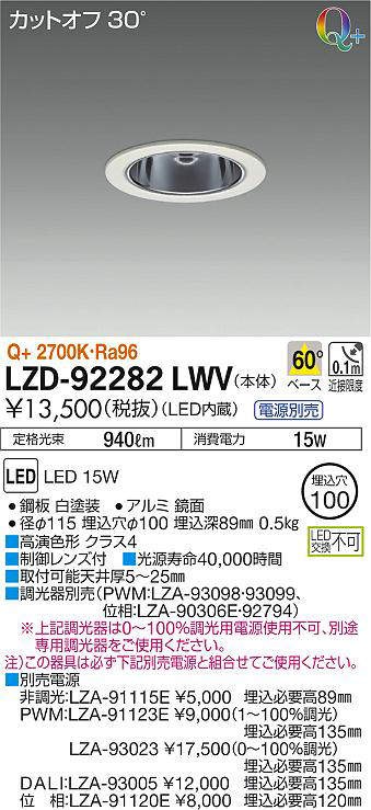 - LZD-92282LWV+LZA-91120E 本体+位相制御調光用電源 21500